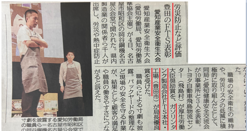 「愛知労働局長優良賞」受賞の記事が中日新聞に掲載されました